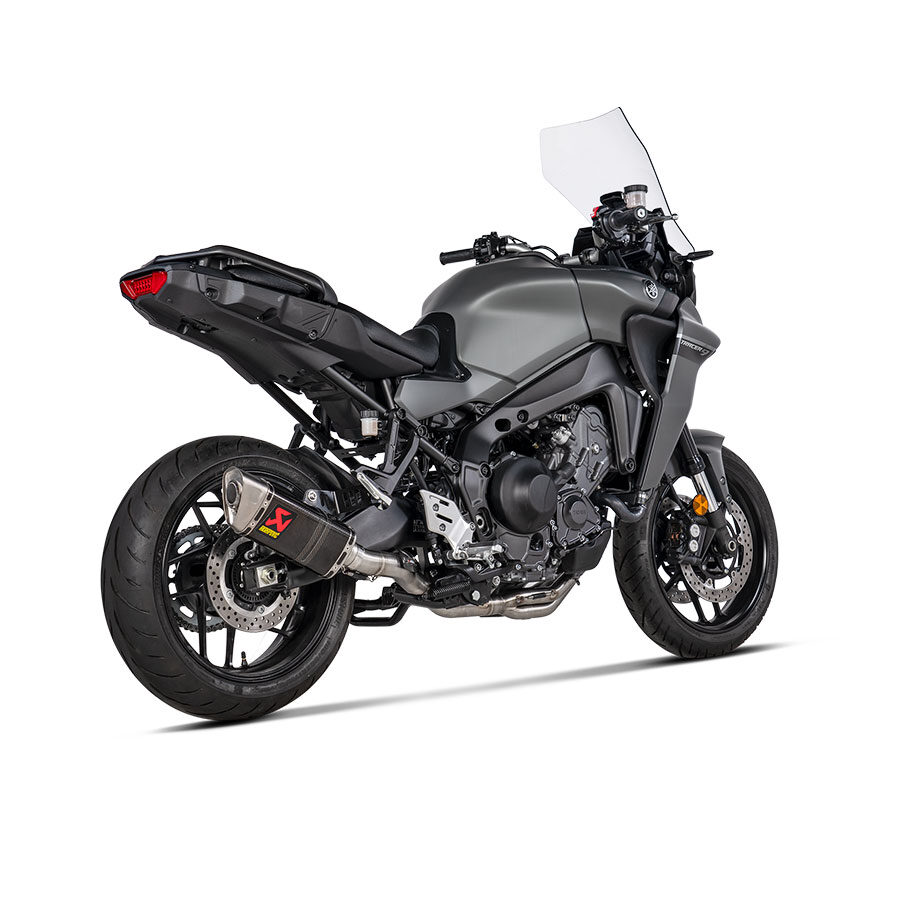 Yeni tasarım, gelişmiş sportif bir görünüm için daha kısa bir susturucuya sahiptir ve görsel etki için motosikletin yan tarafından çıkar. Racing Line (Karbon) egzozlu ve standart egzoz sistemli Tracer 9 üzerinde yapılan arka arkaya testlerle karşılaştırıldığında, güç 9.600 rpm’de 3,3 kW (4,5 hp) arttı.