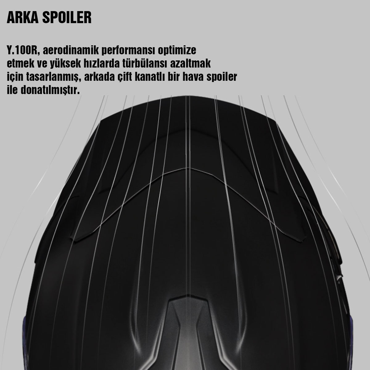 • Y.100R aerodinamik performansı optimize etmek ve yüksek hızlarda türbülansı azaltmak için tasarlanmış, arkada çift kanatlı bir hava spoilerı